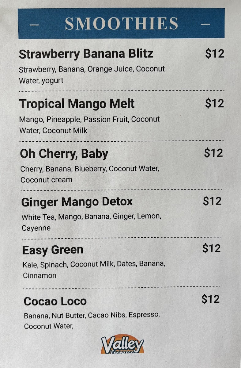 Valley Espresso Co. Menu